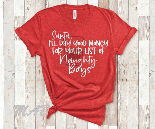 Santa I'll pay good money for your list of naughty boys T-shirt