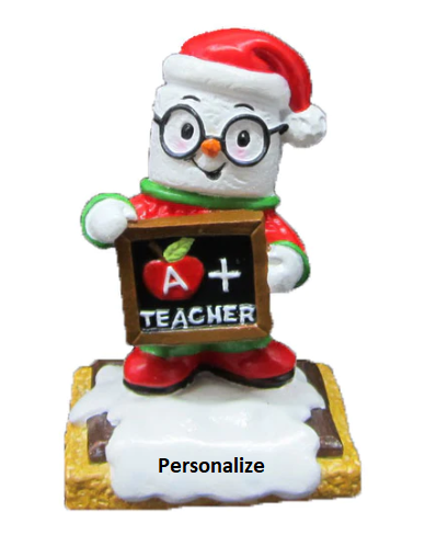This adorable ornament is perfect for your favorite teacher. The snow on the graham cracker can be personalized with any wording.