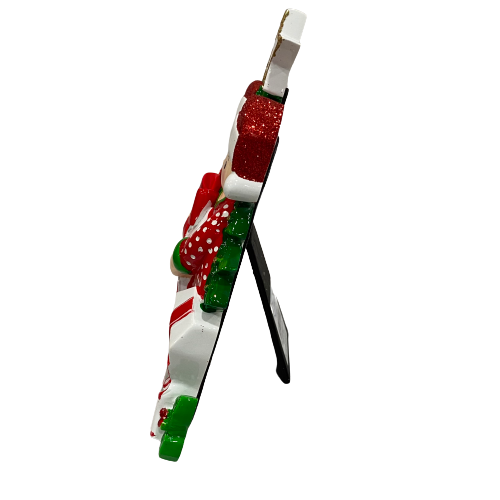 This adorable resin Holiday Table Decoration is available in family of 2. A sturdy collapsible stand is attached to the back of the decoration. It is the perfect family themed piece for a table or fireplace during the holidays.