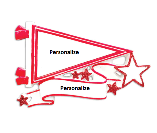 This banner ornament is perfect for a school spirit theme gift for athletes and coaches. The white space on the pennant and banner can be personalized with any wording.